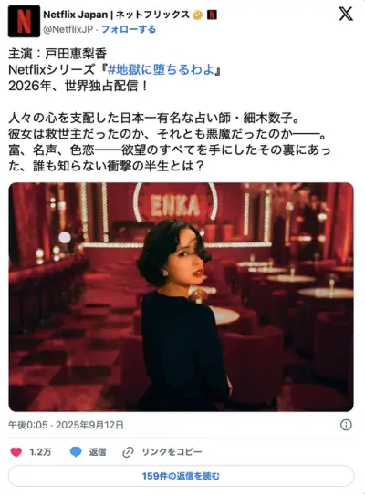 Netflixシリーズ『地獄に堕ちるわよ』 細木数子役は戸田恵梨香