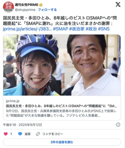 国民民主党・多田ひとみ、ビストロSMAPは「裏でシェフが作ってる」と発言しSMAPファン激怒「SMAPに謝れ」