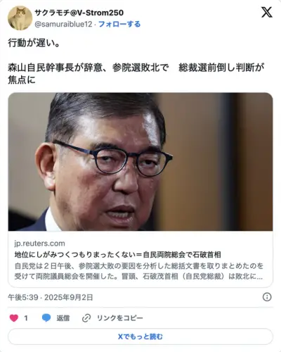 石破氏「地位にしがみつくつもりはまったくない」