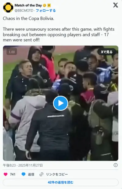 【サッカー】まさかのレッドカード17枚! ボリビアサッカーで何が起こった? 約20名の警察官が介入、催涙ガスも使用される