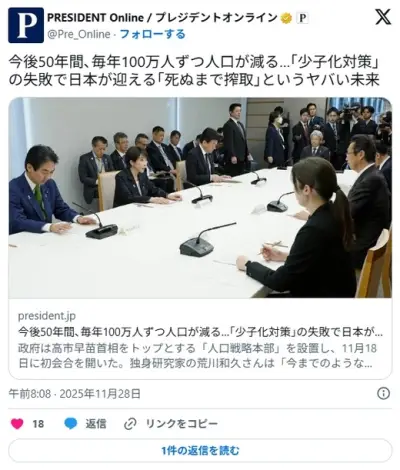 今後50年間、毎年100万人ずつ人口が減る…「少子化対策」の失敗で日本が迎える「死ぬまで搾取」というヤバい未来