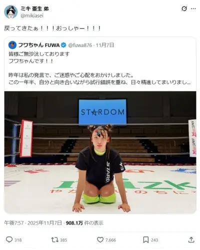 ミキ亜生さん、フワちゃん復帰に喜びツイートして炎上www