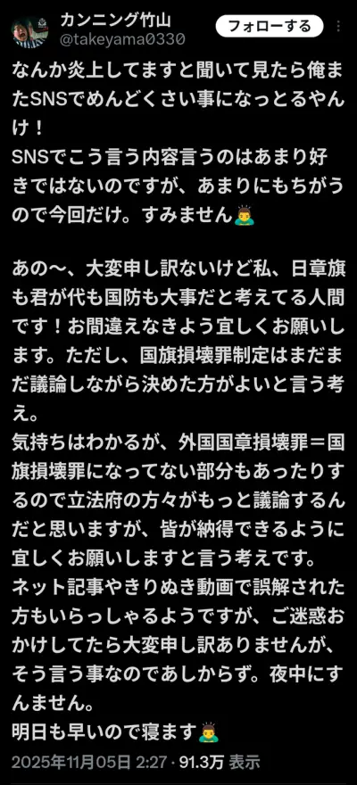【悲報】カンニング竹山さん、お気持ち表明wwwwwwww