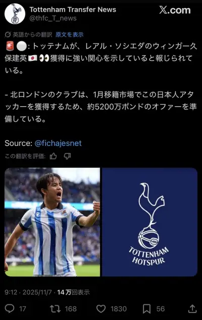 久保建英がトッテナム移籍へ! トッテナム専門の移籍情報誌が伝える