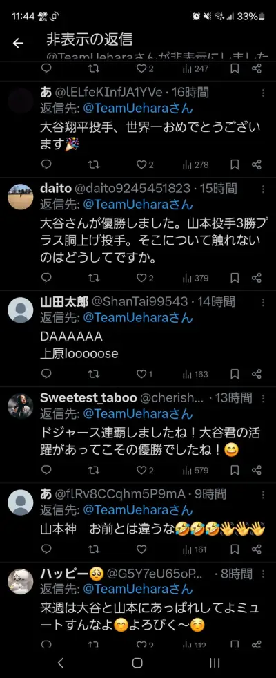 【悲報】上原浩治氏、11/2のX投稿でアンチに絡まれて返信をミュートしてしまう(´;ω;`)