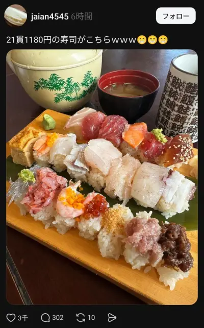 【画像】21貫1180円の寿司、評価が分かれる
