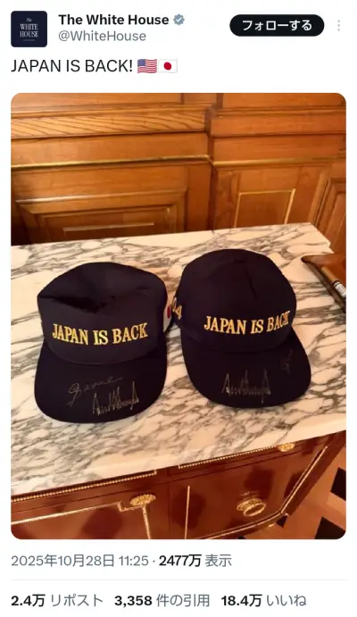【画像】ホワイトハウス公式「JAPAN IS BACK!(俺達の日本が帰ってきた!)」