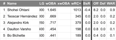 本日の大谷:WAR0.9、wRC+1013