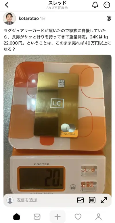 現役医師「ゴールドカード、20gだから40万円か。これが本当の金持ち」→メッキがバレる