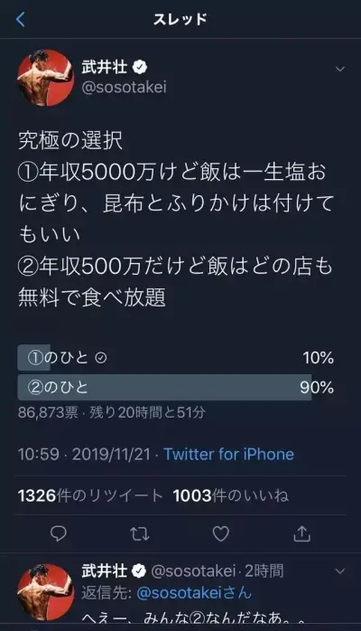 【定期】武井壮さん「年収5000万だが一生塩おむすび」か「年収500万で飲食店全店無料」なら?