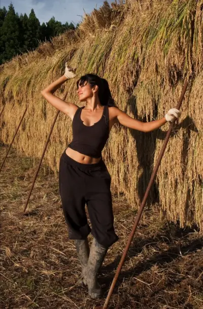 【画像】ローラさん(35)のヘソ出し稲刈りwwwwwwww