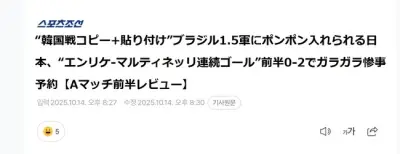 サッカー日本代表ブラジル戦前半が終わった時の韓国の速報記事がこちらwwwwwwwwwwwwwww