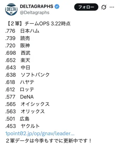 【悲報】広島2軍のチームOPS、ハヤテやオイシックス以下になる