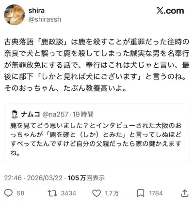 インタビュー「鹿見てどう思った?」大阪のおぢ「確(しか)と見ました!」有識者「つまんなうちの親だったら家の鍵変えるわ」