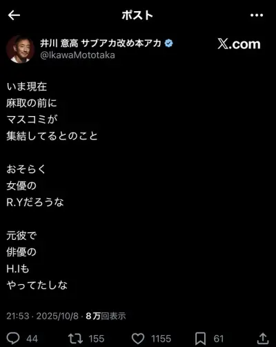 【悲報】女優のR.Y.が間もなくお縄になると話題に