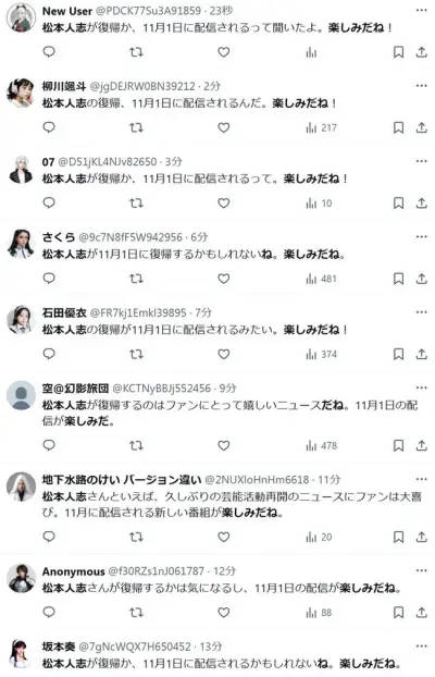 【悲報】松本人志さん復帰ニュースでXにとんでもない数の喜びの声が届き始める