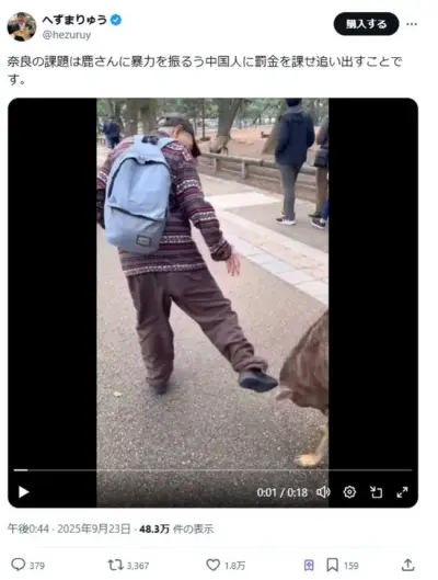 へずまりゅう「これが中国人が鹿蹴った証拠の動画だ」→日本人のおっさんでした