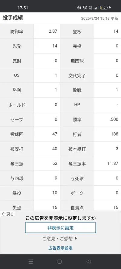 大谷翔平(投手)「1勝1敗 防御率2.87 投球回47 奪三振率11.87 whip1.04」←これについての率直な感想
