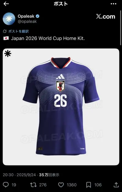 【画像】日本代表の新ユニフォームが流出! W杯2026はこのデザインで臨む模様