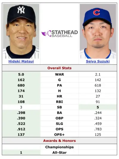 【MLB】鈴木誠也vs松井秀喜の個人成績を徹底比較した結果wwwwww
