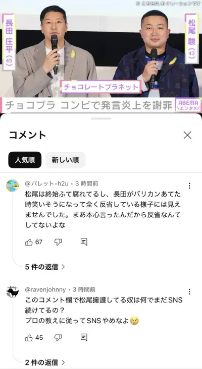 チョコプラ長田「その前の部分も見てれば印象違うと思うがあの部分だけを切り抜かれて拡散された」