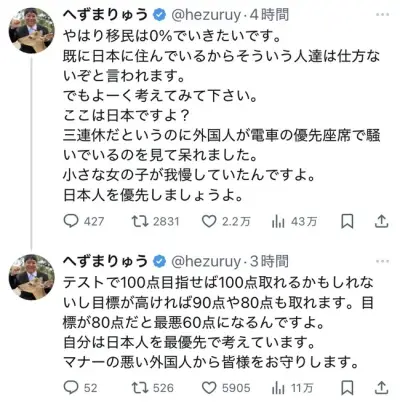 へずまりゅう「移民は0%でいきたいです。日本人を優先しましょうよ」