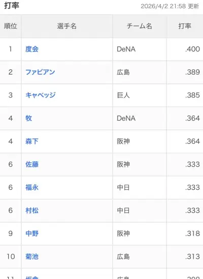 【朗報】DeNA度会、首位打者