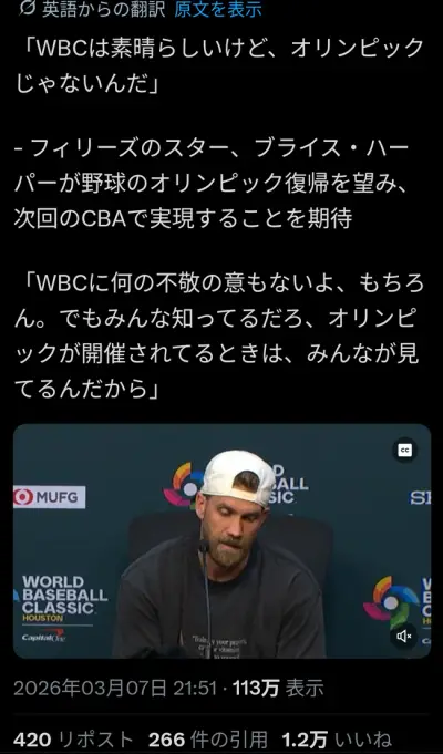 侍ジャパン「選手や監督・コーチ等に対する誹謗中傷を多数確認しています💢」