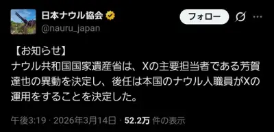 【悲報】ナウル共和国の公式日本支社Twitterの担当者、左遷されTwitter引退wwwww