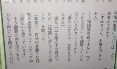 【悲報】広島羽月「自分の他にゾンビタバコ吸ってた奴?、、お答えできません、、」