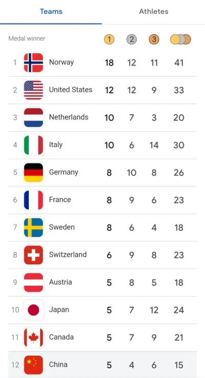 【確定】日本さん、ミラノコルティナ五輪メダルランキング10位wwwwww