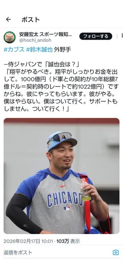 鈴木誠也「誠也会?翔平が金出して全部やるでしょ。1000億ですからね」