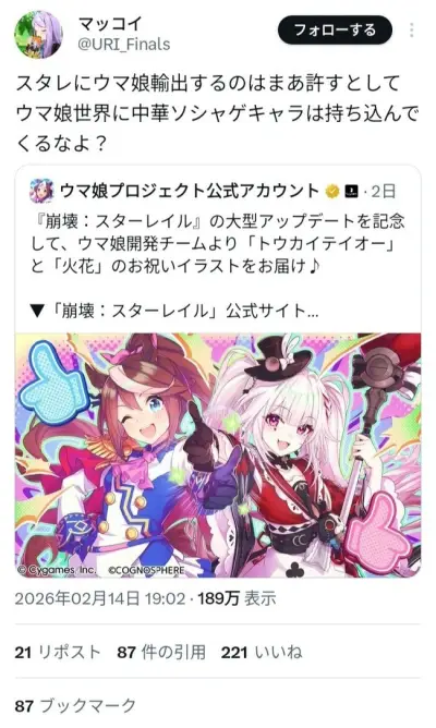 【爆笑】ウマ娘のファンさん、中国のソシャゲとコラボした公式にキレてしまうwww