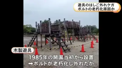公園の木製遊具のはしごが外れ30代男性が転落 腰を打つケガ