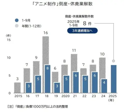 【悲報】アニメ制作会社の倒産・廃業、3年連続で増えてしまう