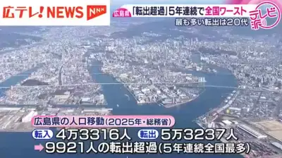 広島県、転出超過が5年連続で全国最多 転出で最も多いのは20代