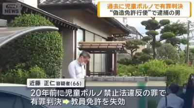 教員免許偽造で逮捕された60代男、過去に児童買春の罪で有罪確定→免許失効後に改名していた