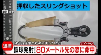 「カラスを撃つために使っている」スリングショットで80m先の店舗の窓ガラス壊した男を逮捕