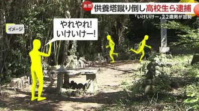 17歳高校生、供養塔や石仏44基を蹴り倒し逮捕 あおった22歳男も逮捕
