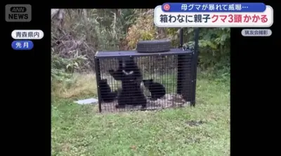 【画像】熊「母ちゃんばかでごめんね」クマサン親子、3匹仲良く箱罠に引っかかる…