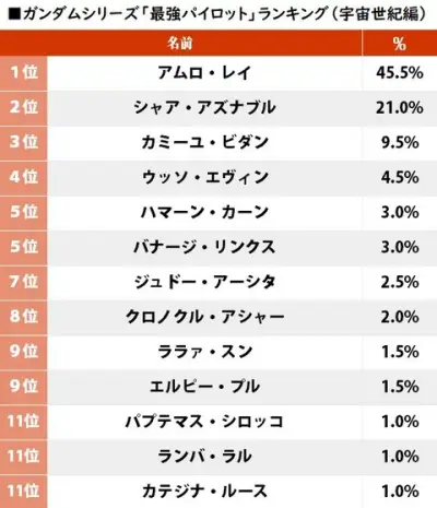 【画像】ガンダム最強パイロットランキング、妥当