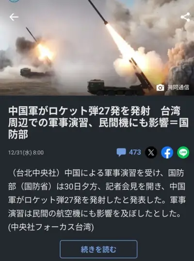 【画像】中国、高市にブチギレ!台湾海峡でロケット弾爆撃ち