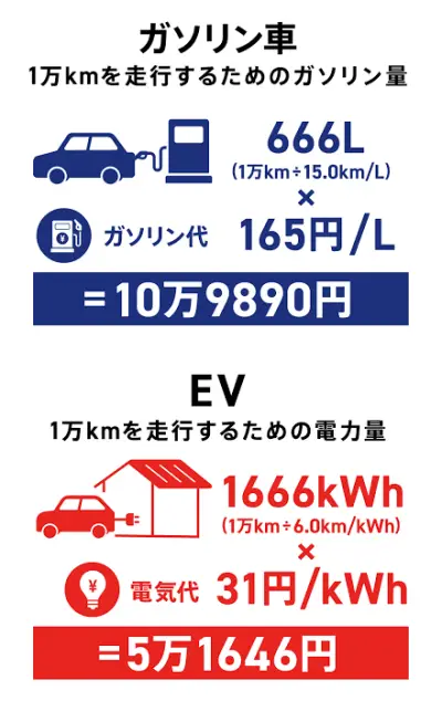 【画像】電気自動車とガソリン車の維持費比較がこちら