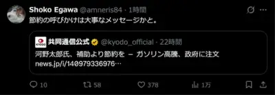 【画像】河野太郎「ガソリン高騰は補助金をやめて節約すればいい」←大炎上