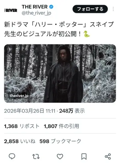 【画像】ハリポタ原作では「病的に青白い顔」とされているドラマ板ハリポタのスネイプ先生が初公開も無事大炎上
