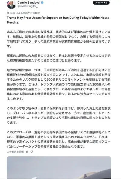 【画像】アメリカ「日銀は500億ドルでホルムズ海峡を通過する世界中の船舶の保険を作れ」