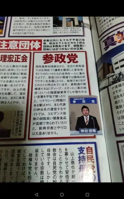 【画像】週刊誌「参政党は党首が胡散臭い高額健康食品を売っている。新興宗教と大差無い」