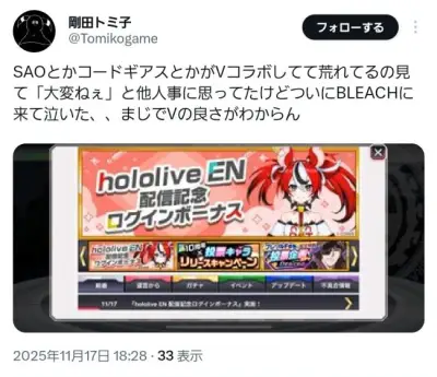 【悲報】BLEACHのソシャゲ、ホロライブとコラボ開始でBLEACHファン咽び泣くwwwwwww