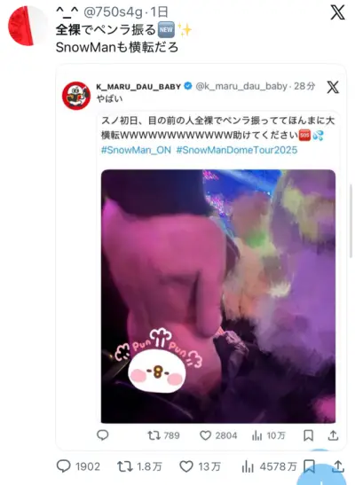 【動画】ジャニオタ女さん、Snow Manライブに全裸で参戦wwwwwww