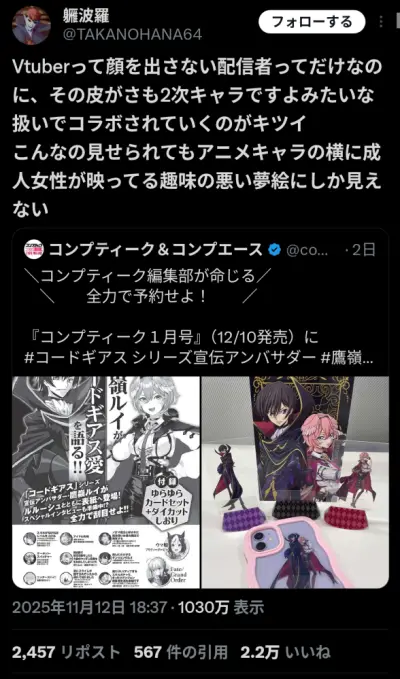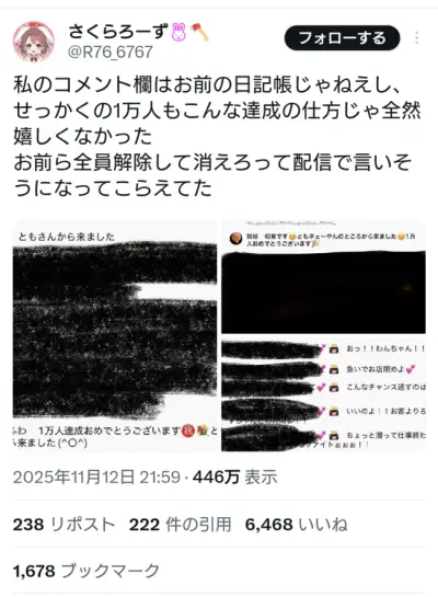 【悲報】登録者1万人達成したVtuberさん、他配信者リスナーからの応援コメントにガチギレ